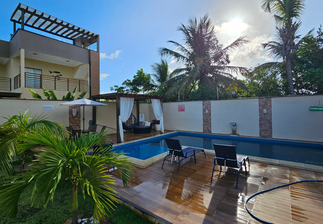 • Piscina ampla e espaços confortáveis para descanso.