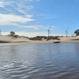O Circuito Atins é um passeio completo para conhecer uma das regiões mais autênticas dos Lençóis Maranhenses. A saída acontece de Barreirinhas, entre 08h30 e 09h00, em veículo 4×4. O percurso segue por trilhas até a Foz do Rio Preguiças, onde é possível apreciar o encontro do rio com o Oceano Atlântico — um dos pontos mais marcantes do trajeto.